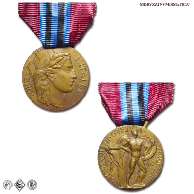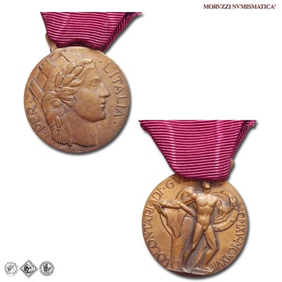 Regno d'Italia, VITTORIO EMANUELE III, MEDAGLIA DI BENEMERENZA IN BRONZO, Ai volontari guerra italo-austriaca 1915-1918, 1918, Opus P. Morbiducci, FDC, (Bini 136) / medaglie italiane militari da collezione | Moruzzi Numismatica