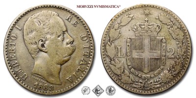 Regno d'Italia, UMBERTO I, LIRE 2, 1° tipo, 1882, Zecca di Roma, ARGENTO, MB, (Pagani 592) / monete italiane moderne d'argento (moneta italiana moderna da collezione - Casa Savoia) | Moruzzi Numismatica