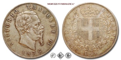 Regno d'Italia, VITTORIO EMANUELE II, LIRE 5 (SCUDO), 1876 R, Zecca di Roma, ARGENTO, mBB, (Pagani 501) / monete italiane moderne (moneta italiana moderna da collezione - scudi d'argento - Casa Savoia) | Moruzzi Numismatica