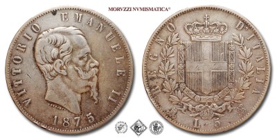 Regno d'Italia, VITTORIO EMANUELE II, LIRE 5 (SCUDO), 1875 M, Zecca di Milano, ARGENTO, qBB, (Pagani 499) / monete italiane moderne (moneta italia moderna d'argento - scudi da collezione - Casa Savoia) | Moruzzi Numismatica