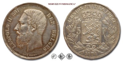 Belgio, LEOPOLDO II, FRANCHI 5, 1870, Zecca di Bruxelles, ARGENTO, BB, (KM 24) / LEOPOLD II ROI DES BELGES 5 FRANCS pièces de monnaies de Belgique (WORLD SILVER COINS - monete mondiali europee belghe moderne d'argento - moneta mondiale europea belga) | Moruzzi Numismatica