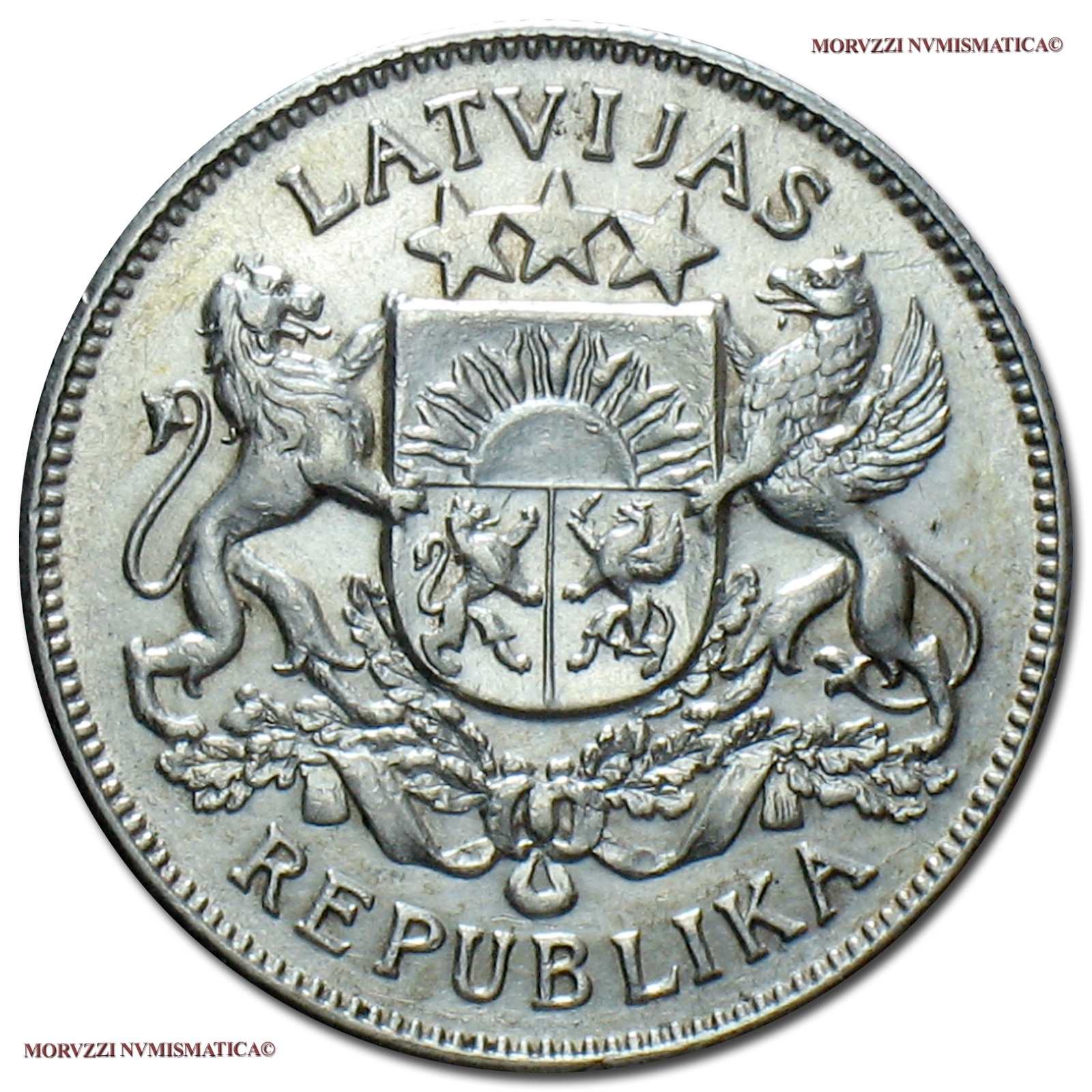 LATVIJAS REPUBLIKA, Emissione: 1925, Zecca di Londra (The Royal Mint), Rif. bibl. KM, 8; Schön, 8; Metallo: AR, gr. 10,04, (ME120571), Diam.: mm. 26,96, SPL