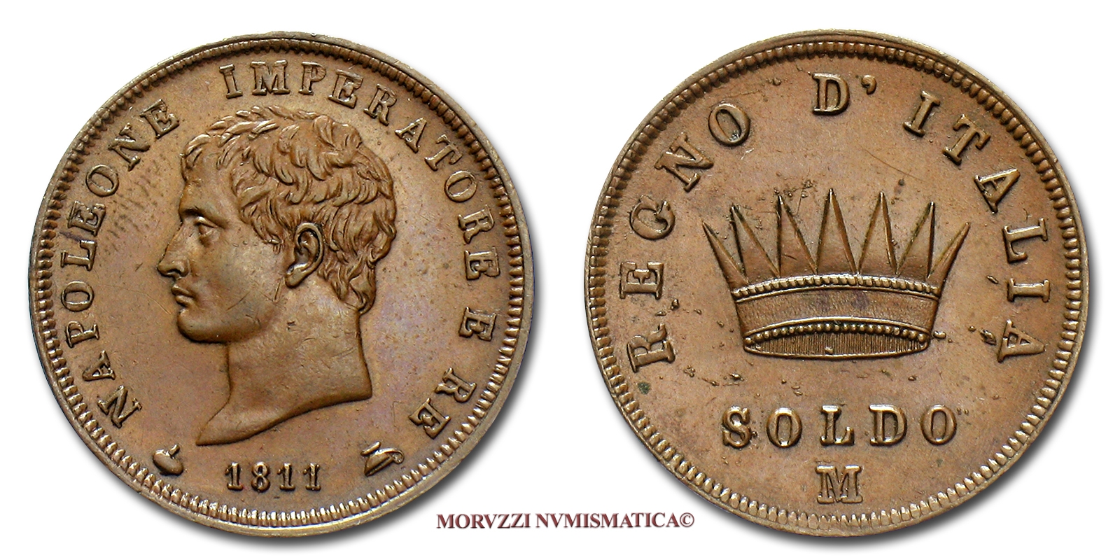 Regno d'Italia, NAPOLEONE I, SOLDO, 1811 M, zecca di Milano, RAME, mSPL, (Pagani 76) / Napoleon Bonaparte COPPER coins (monete italiane preunitarie napoleoniche moderne - moneta italiana preunitaria napoleonica moderna) monnaies de Napoléon Ier
