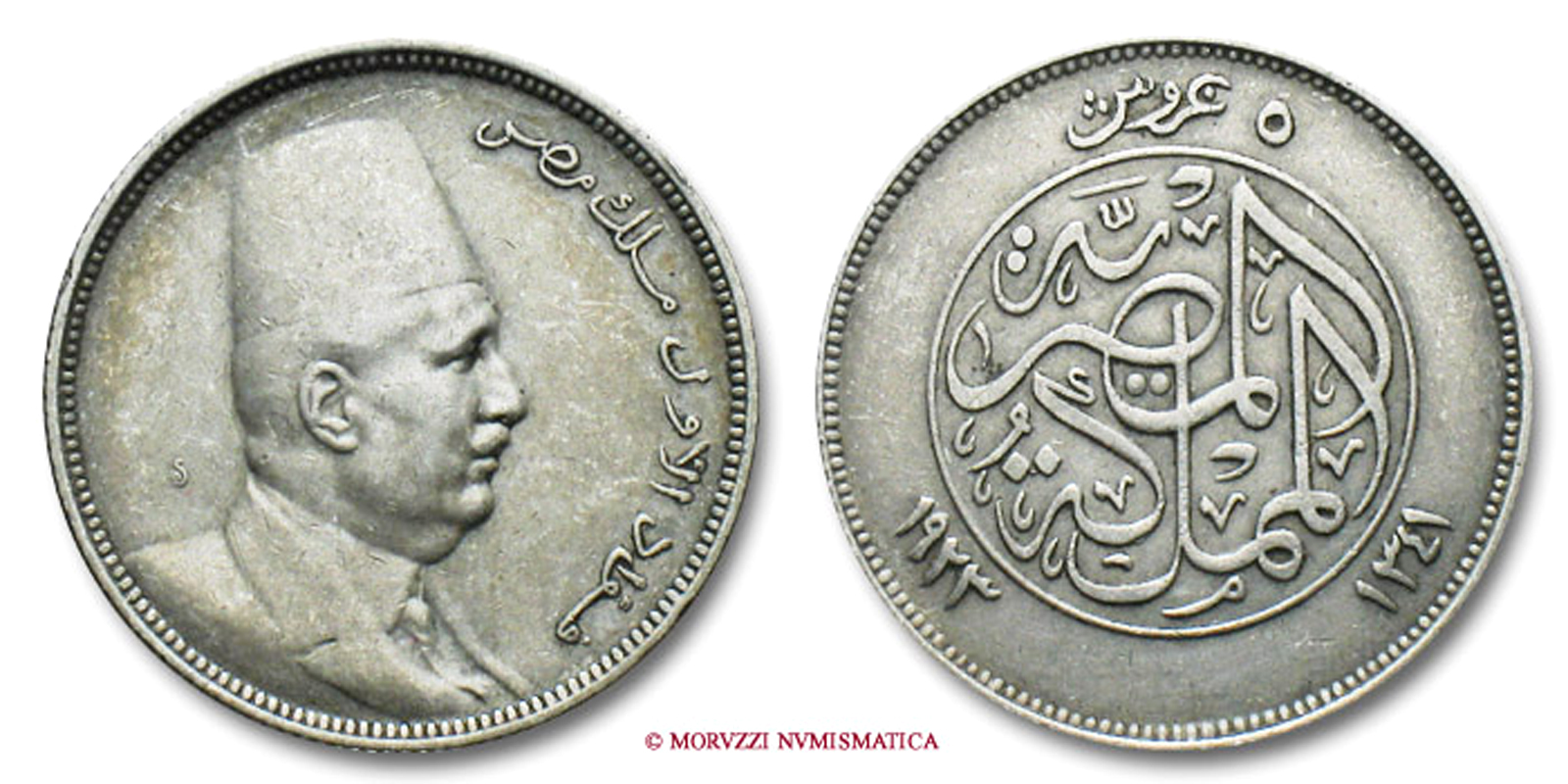Egitto, AHMED FUAD I 1922-1936, PIASTRE 5, Emissione del 1923, Rif. bibl. KM, 336; Metallo AR, gr. 6,95, (ME97790), Diam.: mm 26,22 mBB