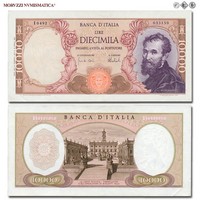 Italia, Repubblica, BANCA D'ITALIA, 10000 LIRE, Michelangelo, 15.02.1973, D/ nel medaglione d., busto di Michelangelo Buonarroti, R/ nel centro, veduta del Palazzo del Campidoglio e piazza in Roma, Rif. bibl. Crapanzano, 578; (CM144294), Firme: Carlo, Barbarito, n° di serie: S0548 071774, FDS