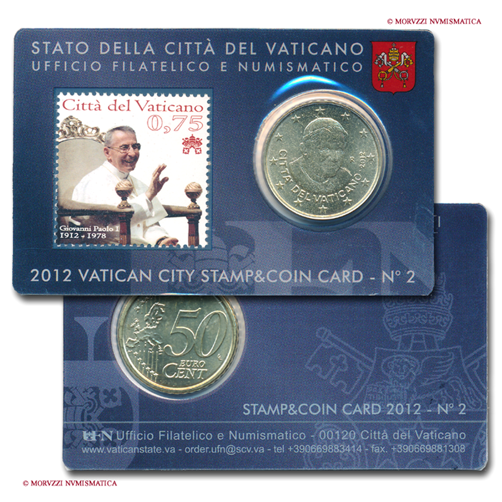Città del Vaticano, BENEDETTO XVI, Ratzinger, 2005-2013, VATICAN CITY STAMP & COIN CARD 2 Giovanni Paolo I (1912-1978), 2012 / COINCARD