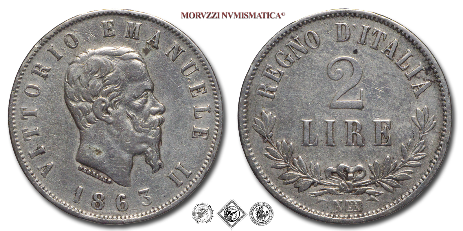 Regno d'Italia, VITTORIO EMANUELE II, LIRE 2, Valore, 1863 N, Valore, Zecca di Napoli, ARGENTO, BB, (Pagani 508) / monete italiane moderne d'argento (moneta italiana moderna da collezione - Casa Savoia)