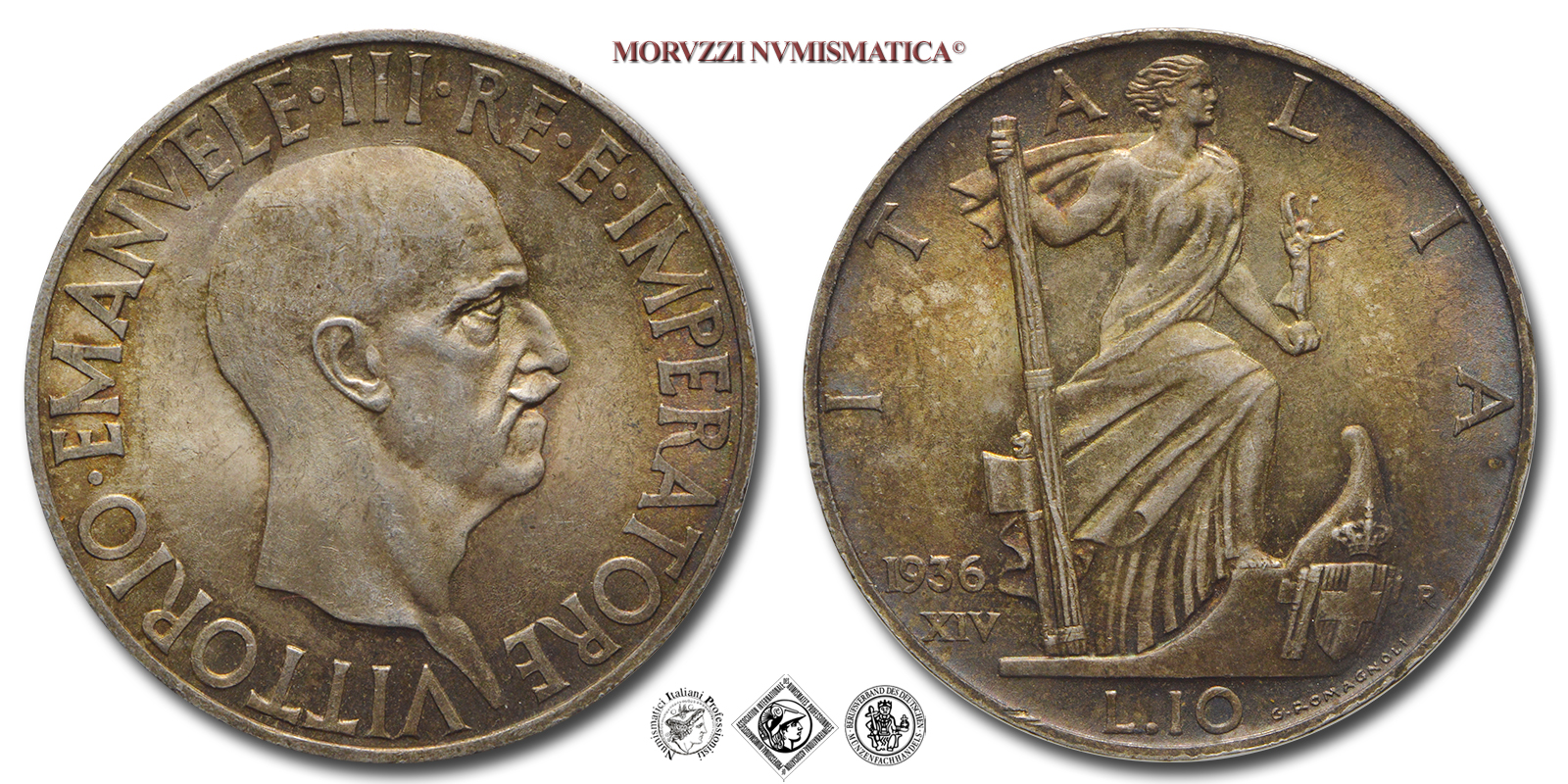Regno d'Italia, VITTORIO EMANUELE III, 10 LIRE, 1936 XIV, Impero, Zecca di Roma, ARGENTO, FDC, (Pagani 700) / monete italiane moderne d'argento (moneta italiana moderna da collezione - Casa Savoia)