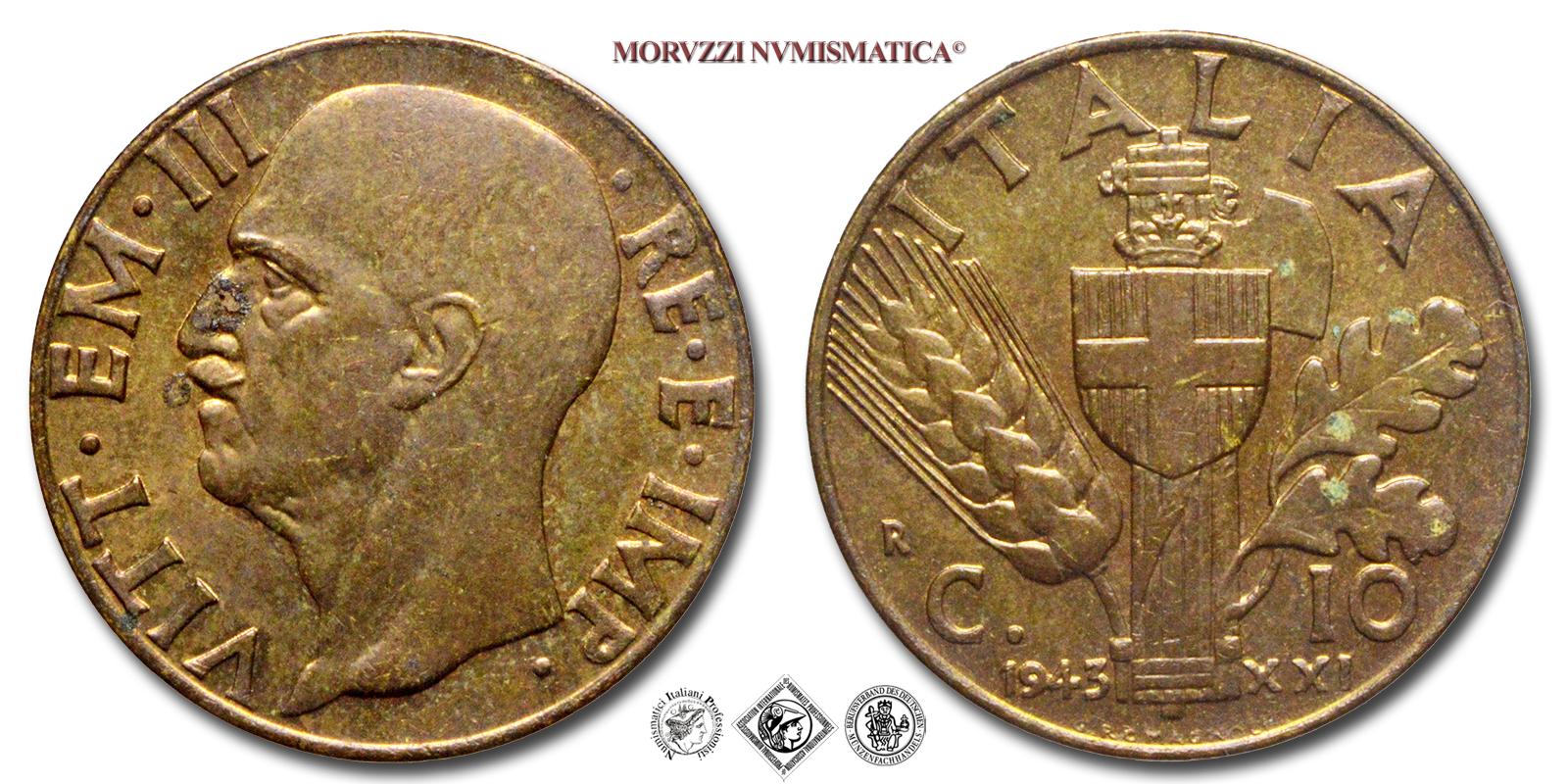 Regno d'Italia, VITTORIO EMANUELE III, CENTESIMI 10, Impero, 1943 XXI, Zecca di Roma, BRONZITAL, q​​​​​​​FDC, (Pagani 891) / monete italiane moderne (moneta italiana moderna da collezione - Casa Savoia)