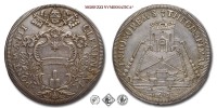 Stato Pontificio, CLEMENTE XI, Albani, 1700-1721, TESTONE, Emissione: A V, D/ * CLEMENS * XI * - * PONT * MAX * A * V, stemma a targa sagomata, chiavi con impugnatura ovale a due lobi, R/ RESTITVISTI • MAGNIFICENTIAM, veduta del Palazzo Ducale di Urbino; in esergo: armetta D'Aste (Presidente delle Zecche), Zecca di Roma, Rif. bibl. Muntoni, 40; Berman, 2377; Metallo: AR, gr. 32,02, (MX160859), Diam.: mm. 47,16, mSPL, (RR)