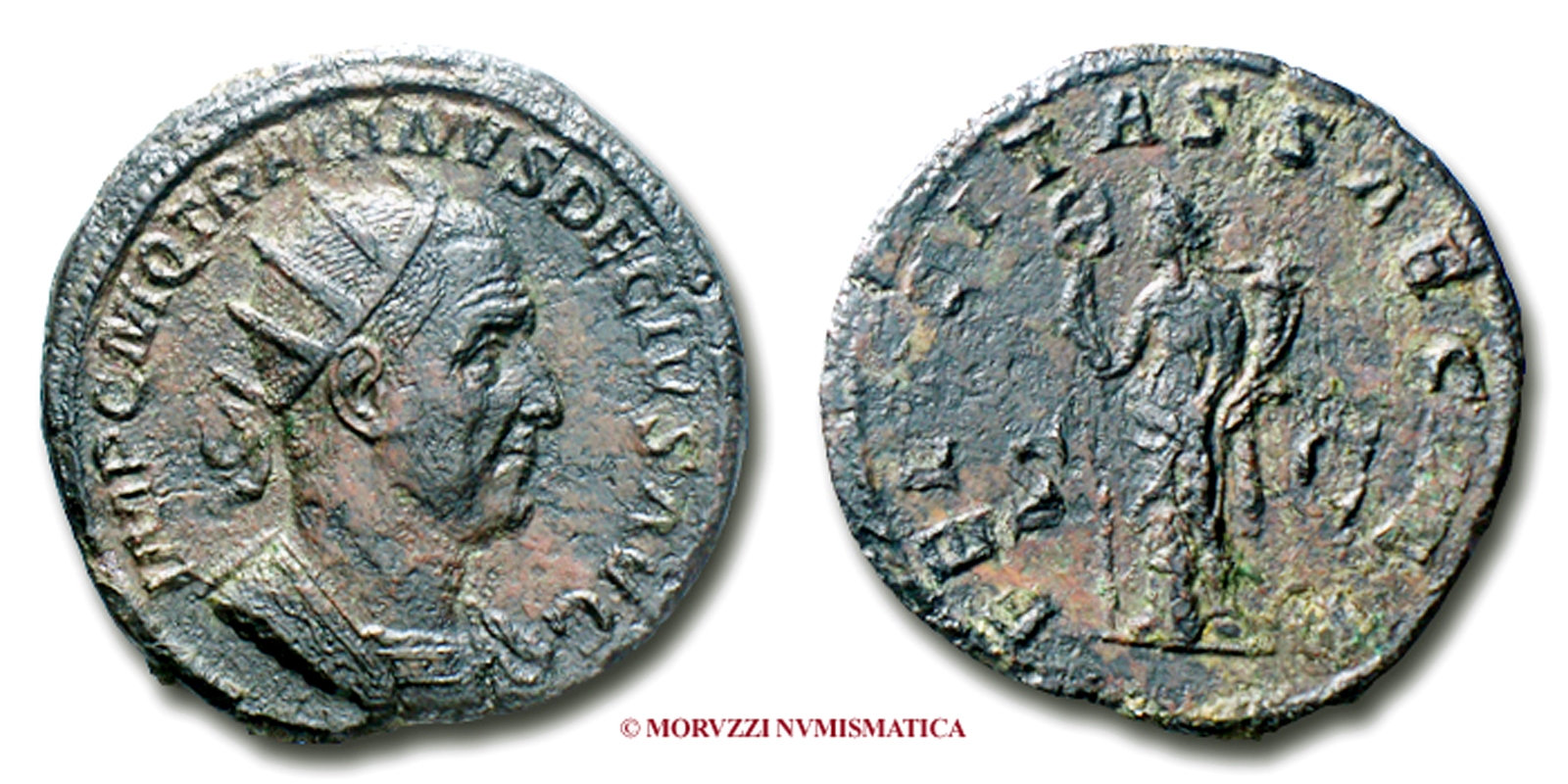 TRAIANO DECIO, 249-251 d.C., DOPPIO SESTERZIO, Emissione: 249-251 d.C., Zecca di Roma, Rif. bibl. R.I.C., 115a/R; Cohen, 39/Fr. 30; Metallo: AE, gr. 33,51, (MR87756), Diam.: mm. 36,63, mBB/BB, (R)