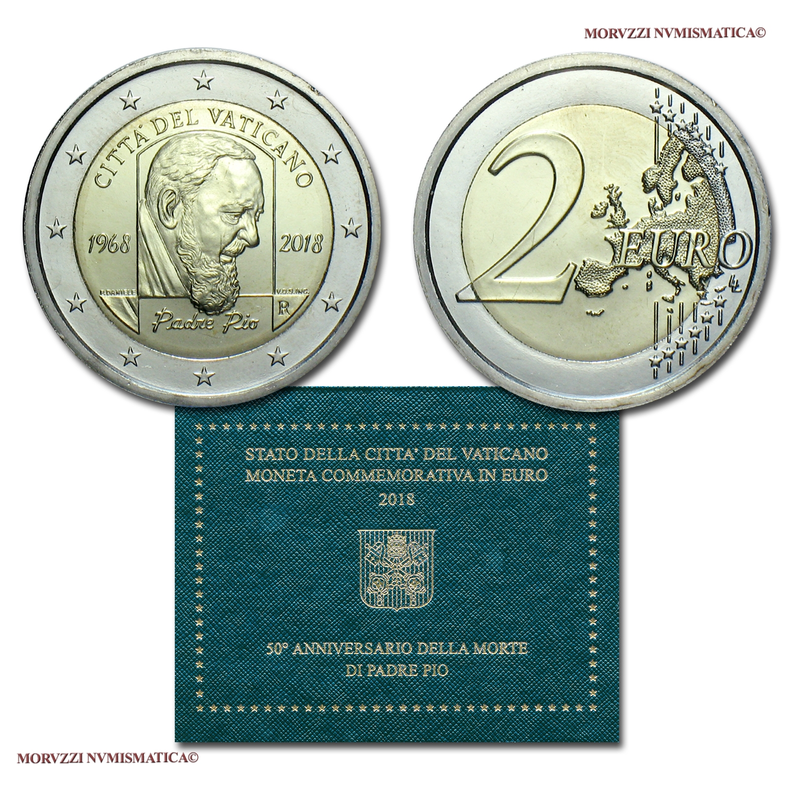Città del Vaticano, FRANCESCO, Bergoglio, 2 euro commemorativo 2018, Moneta bimetallica da due euro commemorativa del 50° Anniversario della morte di Padre Pio, nella confezione originale della zecca di Roma; Metallo CU/NI, gr. 8,50, Diam.: mm 25,75, FDC