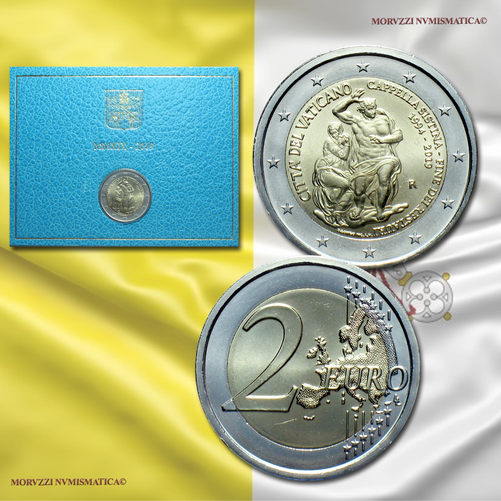 Città del Vaticano, 2 euro 2019 FDC, 25º anniversario del Restauro della Cappella Sistina / monete vaticane di Papa Francesco (2 EUROS BU - 2€ commemorative coins - "2 euro" commemorativi da collezione - moneta commemorativa da due euro) Stempelglanz