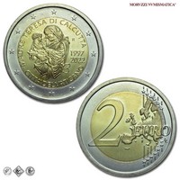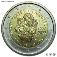 Nel 1997, all’ età di 87 anni, terminava l’esistenza terrena di Madre Teresa di Calcutta. La Zecca dello Stato Vaticano dedica a lei e al suo operato la moneta da 2 euro, nella doppia versione fior di conio e fondo specchio. L'artista Orietta Rossi ha riprodotto, sul rovescio della moneta, Madre Teresa mentre stringe tra le braccia un bimbo indiano, guardandolo con espressione materna. Questa dolcissima immagine è l’emblema di tutto l’amore, l’impegno e la dedizione che Madre Teresa ha offerto per alleviare le sofferenze dei “più poveri dei poveri”. Nata nel 1910 a Skopje, attuale Macedonia del Nord, fu cresciuta secondo i precetti della religione cattolica. Si interessò fin da giovanissima alle molteplici attività dei missionari in India e, dopo aver preso i voti, dedicò tutta la sua esistenza a soccorrere e a proteggere i più bisognosi. La Congregazione delle “Missionarie della Carità”, da lei fondata, fu riconosciuta da papa Pio XII nel 1950; da allora è presente in numerosi paesi d’Europa, Africa, Asia ed Oceania.