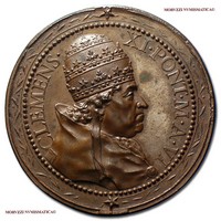 Stato Pontificio, CLEMENTE XI, Albani, 1700-1721, MEDAGLIA STRAORDINARIA IN BRONZO (contorno floreale), Controversia con l'Austria, Emissione: 1706 A VI, D/ CLEMENS • XI • PONT • M • A • VI, busto a d. con triregno e piviale; sotto: S.VR, R/ IPSVM AVDITE, il Papa in trono, ai suoi piedi il Mondo; in esergo: NANCEJI • CVS, Opus Ferdinando De Saint-urbain, Rif. bibl. Miselli, 57; Metallo: AE, gr. 38,45, (MP141264), Diam.: mm. 41,40, qFDC, (RR)