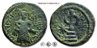 La moneta è molto usurata e, se i rilievi originariamente erano poco rilevati, alcune parti dell’esemplare possono non essere leggibili.