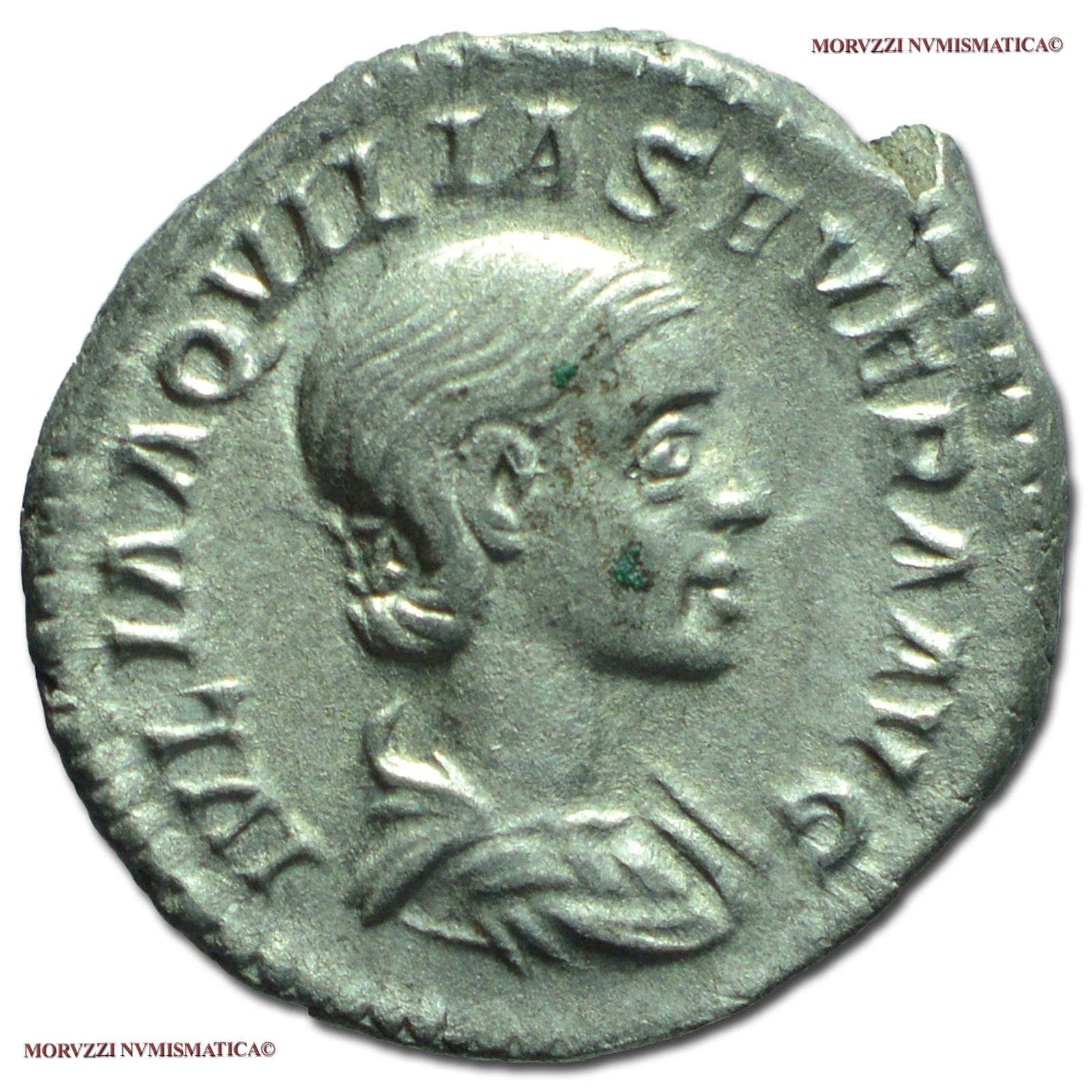 AQUILIA SEVERA, Moglie di Elagabalo, DENARIO, Emissione: 218-222 d.C., Zecca di Antiochia, Rif. bibl. R.I.C., 225/S; Cohen, 2/Fr.20; Metallo: AR, gr. 2,65, (MR142001), Diam.: mm. 18,63, SPL, (R)