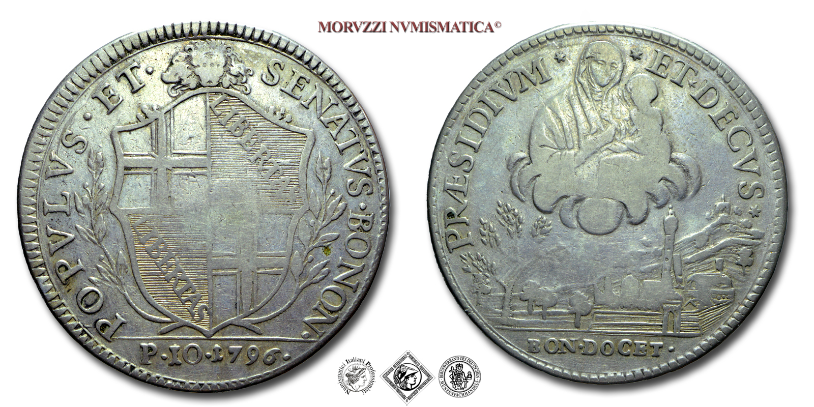 Emissione: 1796, Zecca di Bologna, Rif. bibl. Pagani, 34a; Metallo: AR, gr. 28,48, (MZ82163), Diam.: mm. 39,49, MB, (RR)