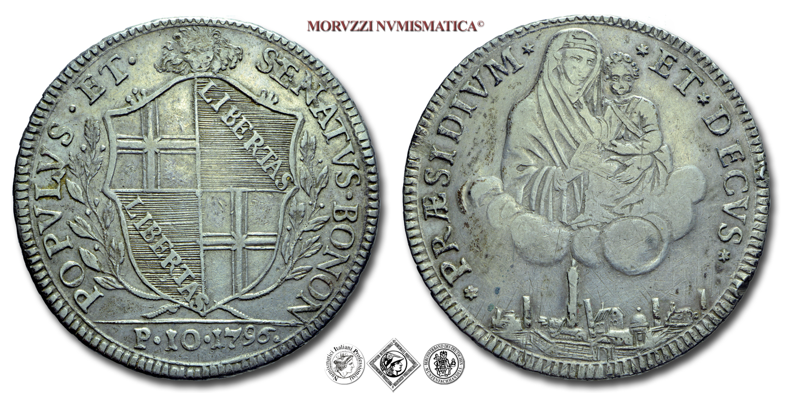 Emissione: 1796, Zecca di Bologna, Rif. bibl. Pagani, 35a; Metallo: AR, gr. 29,01, (MZ145889), Diam.: mm. 38,94, mBB