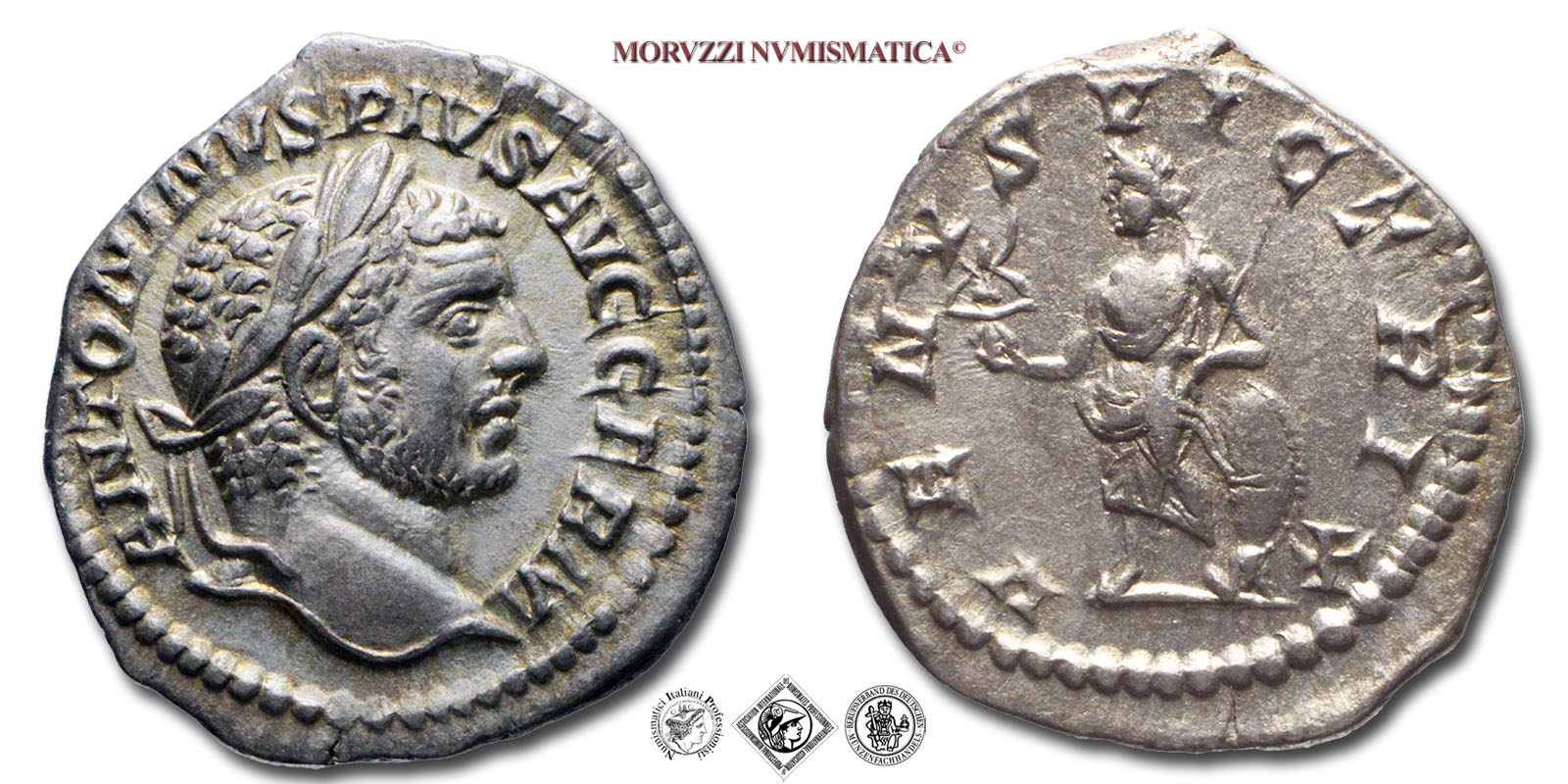 CARACALLA, 198-217 d.C., DENARIO, Emissione: 215 d.C., Zecca di Roma, Rif. bibl. R.I.C., 311b; Cohen, 606; Metallo: AR, gr. 2,72, (MR11231), Diam.: mm. 18,86, SPL