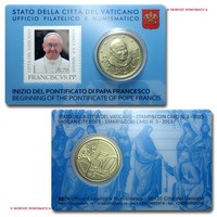 Città del Vaticano, FRANCESCO I, Bergoglio, Dal 2013, Stamp&Coin card contenente una moneta da 50 centesimi, nella confezione originale della zecca di Roma, Metallo: CU/AL/ZN/SN, gr. 7,89, Diam.: mm 24,25, FDC ed un francobollo da 3,00 euro.