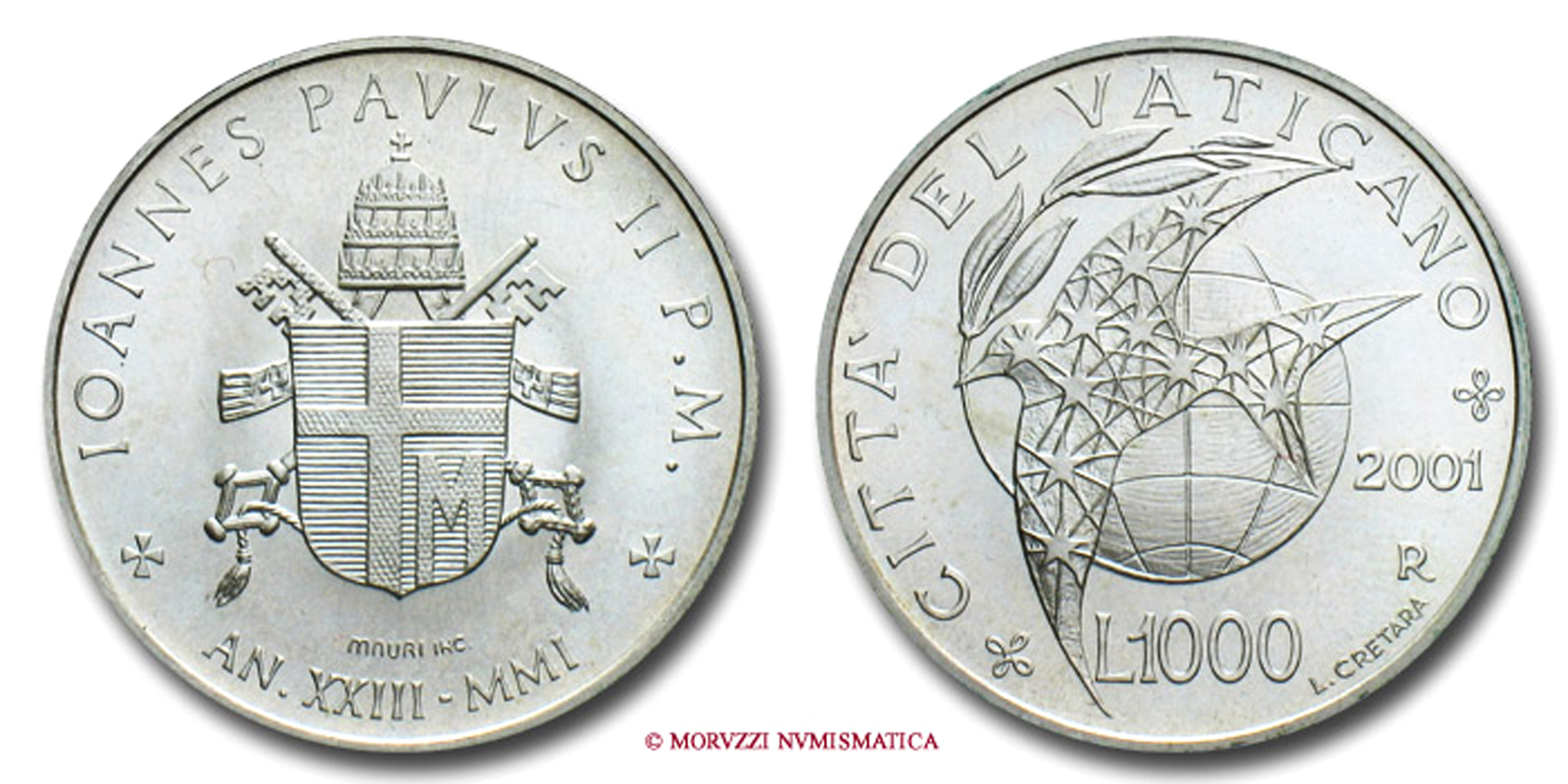 Emissione: 2001 A XXIII, Zecca di Roma, Rif. bibl. Unif., GPA2.676; Metallo: AR, gr. 14,60, (MX105485), Diam.: mm. 31,40, FDC