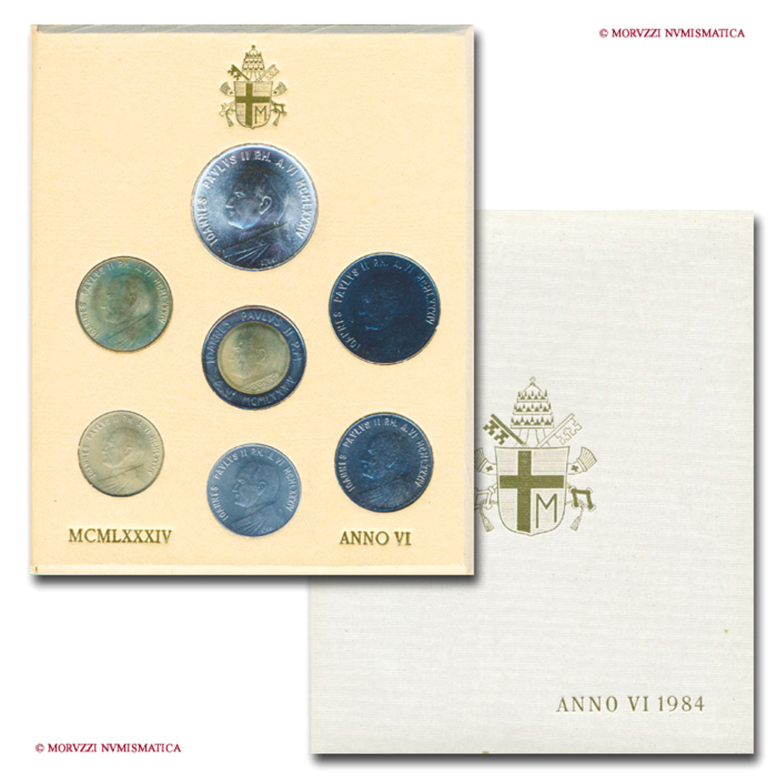 Città del Vaticano, GIOVANNI PAOLO II, Woityla, 1978-2005, SERIE ANNUALE DI 7 VALORI, La Pace, Emissione: 1984 AN VI, Zecca di Roma, Rif. bibl. Unif., 858; Metallo: vari, FDC