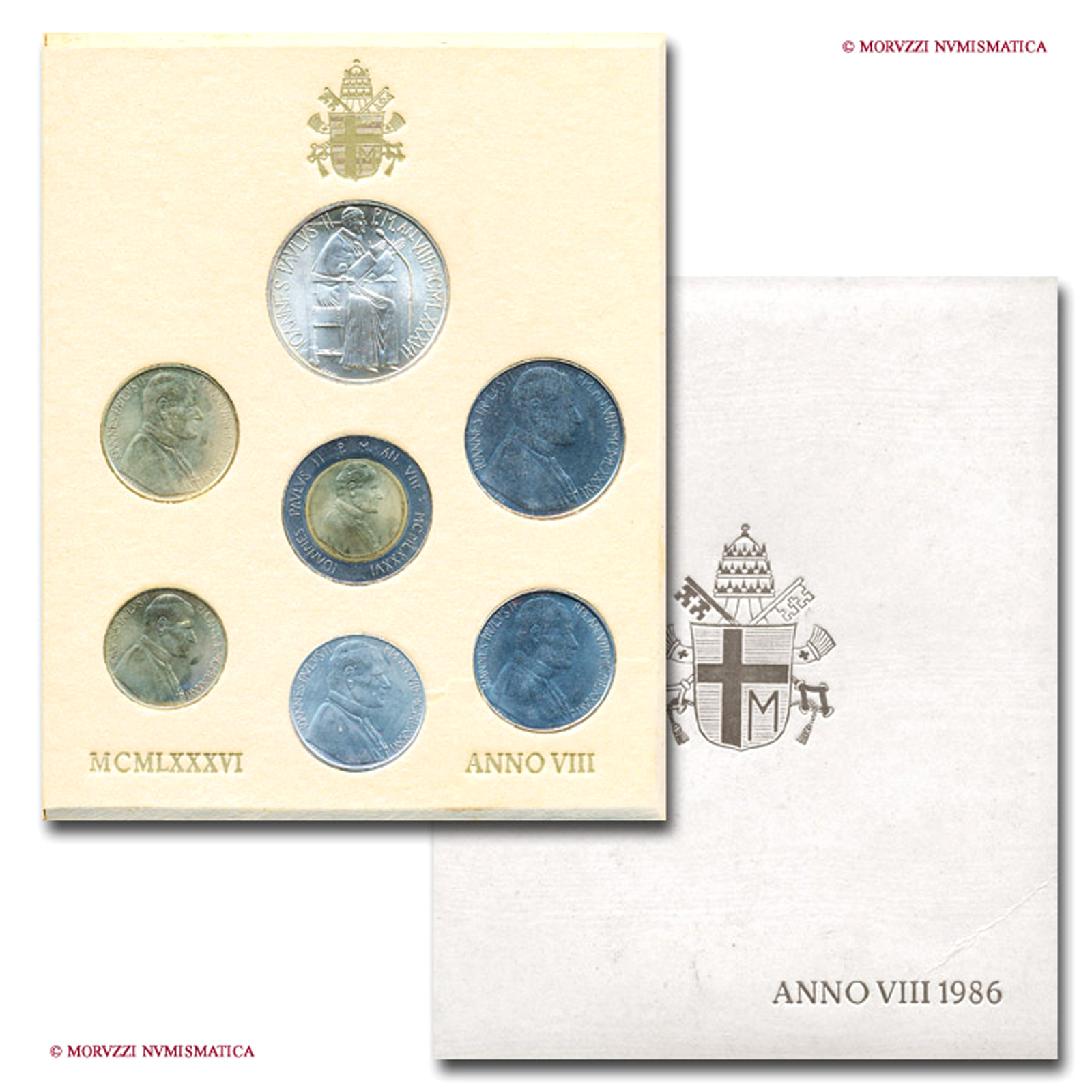 Città del Vaticano, GIOVANNI PAOLO II, Woityla, 1978-2005, SERIE ANNUALE DI 7 VALORI, La Pace, Emissione: 1986 AN VIII, Zecca di Roma, Rif. bibl. Unif., 860; Metallo: vari, FDC