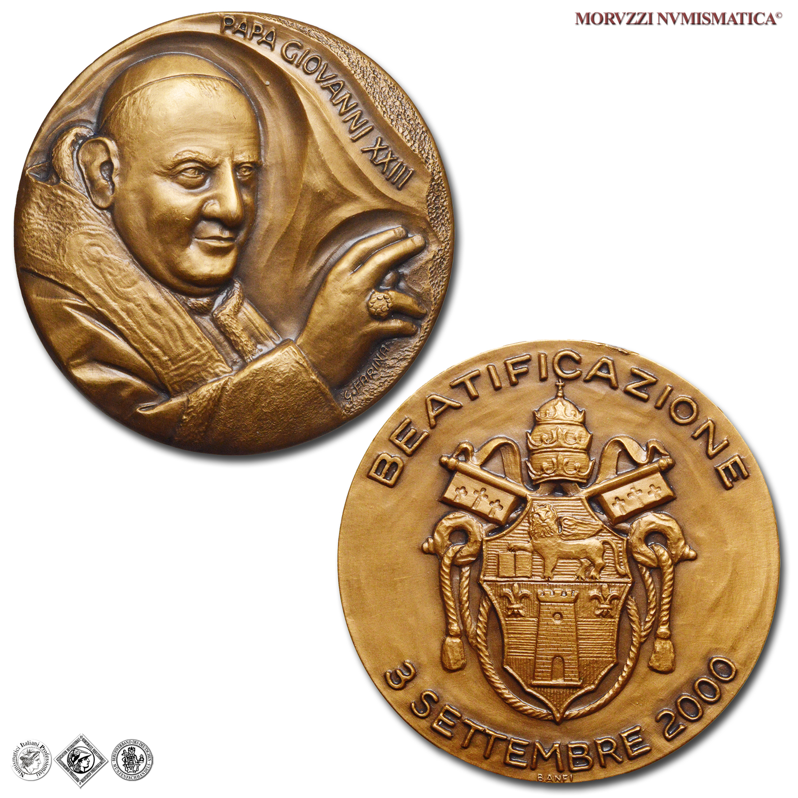 Beatificazione, Emissione: 2000, Opus Giancarlo Farina, Rif. bibl. Modesti, 549; Metallo: AE, gr. 73,43, (MP157242), Diam.: mm. 49,95, FDC