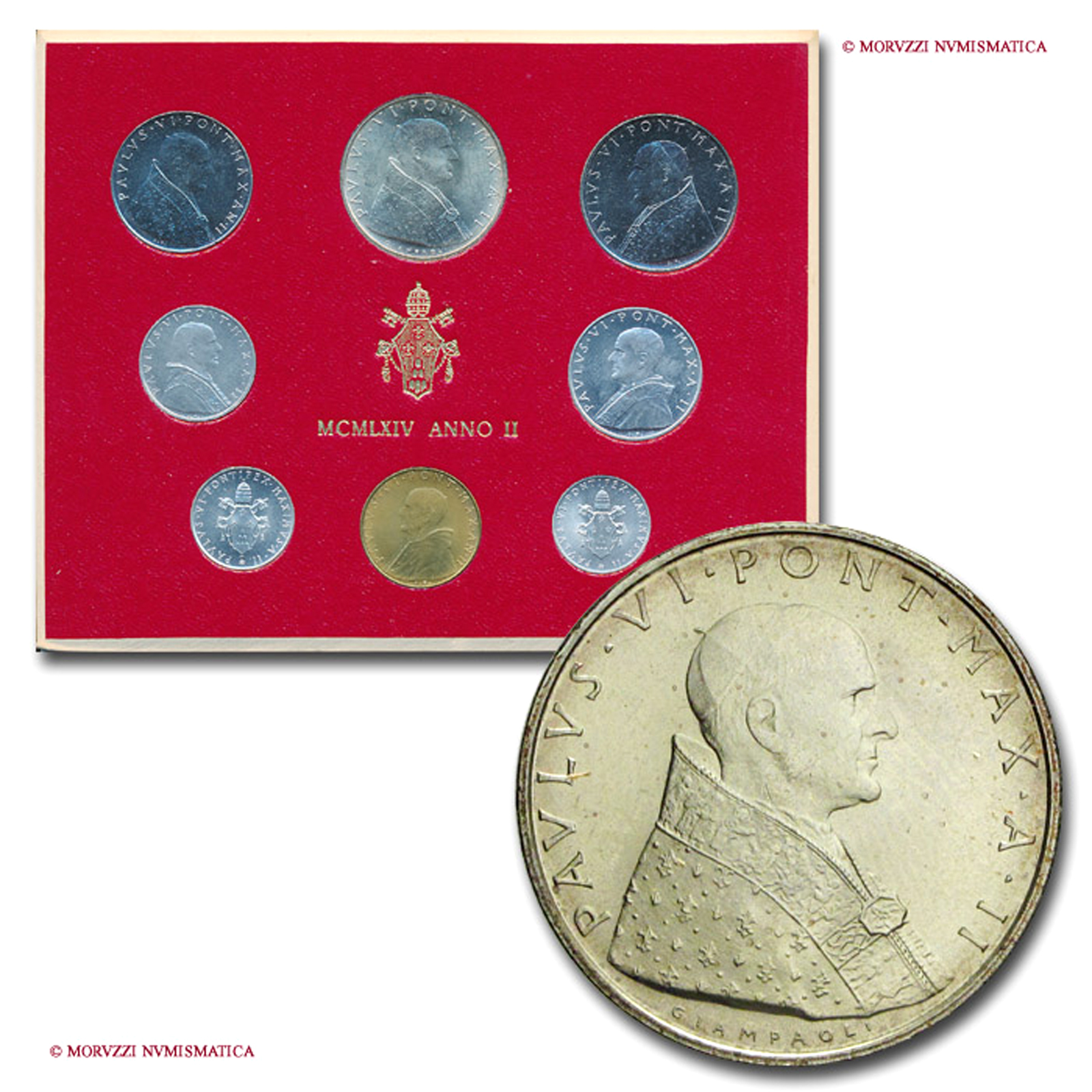 Città del Vaticano, PAOLO VI, Montini, 1963-1978, SERIE ANNUALE DI 8 VALORI, Emissione: 1964 AN II, Zecca di Roma, Rif. bibl. Unif., PAO6.836; Metallo: vari, FDC