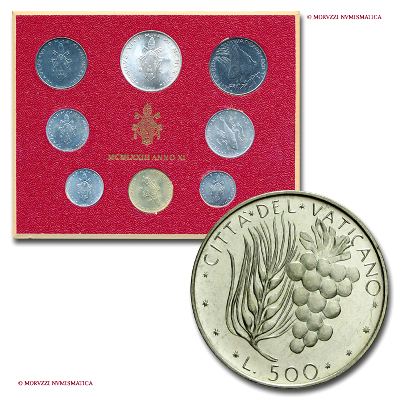 Città del Vaticano, PAOLO VI, Montini, 1963-1978, SERIE ANNUALE DI 8 VALORI, Emissione: 1973 AN XI, Zecca di Roma, Rif. bibl. Unif., PAO6.845; Metallo: vari, FDC