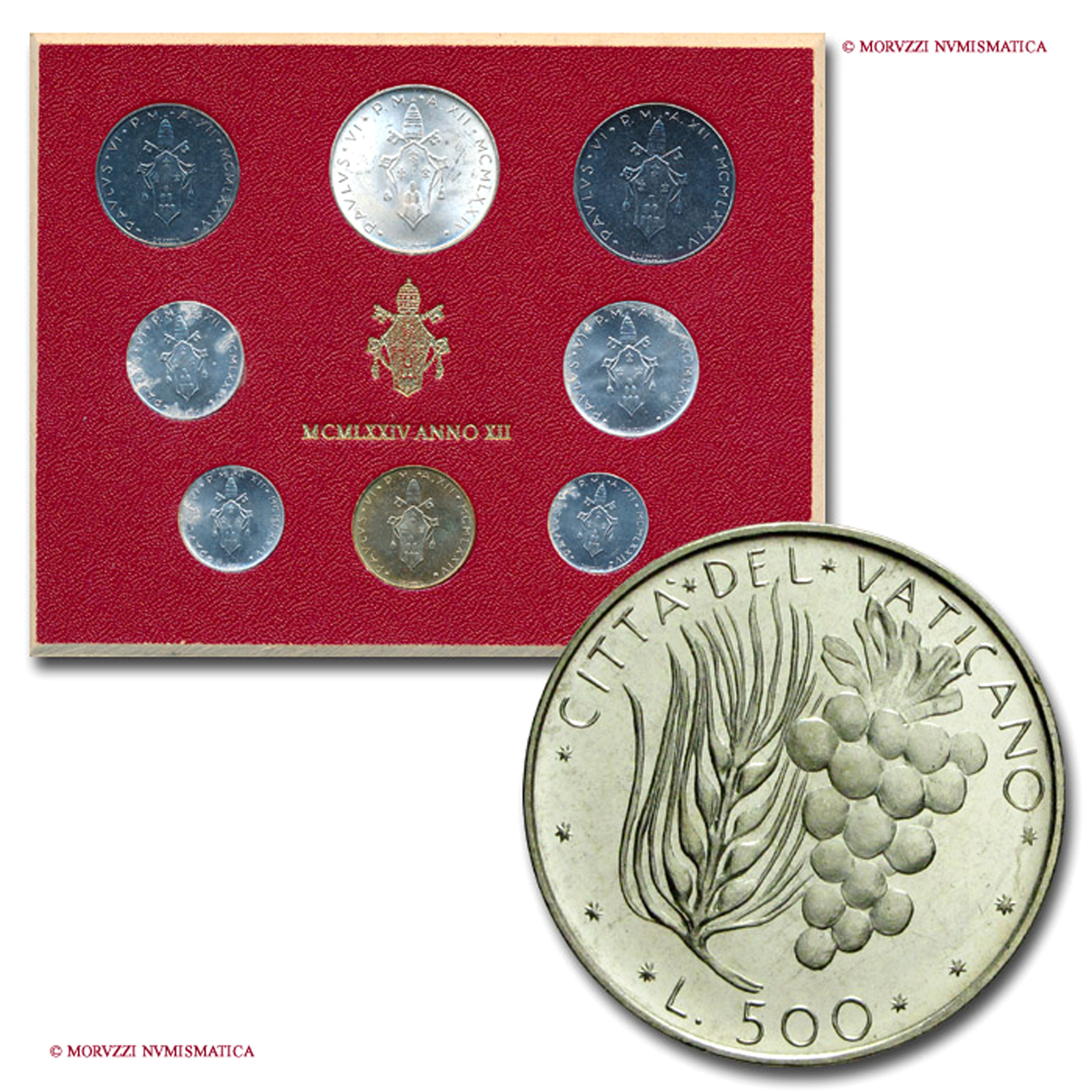Città del Vaticano, PAOLO VI, Montini, 1963-1978, SERIE ANNUALE DI 8 VALORI, Emissione: 1974 AN XII, Zecca di Roma, Rif. bibl. Unif., PAO6.846; Metallo: vari, FDC