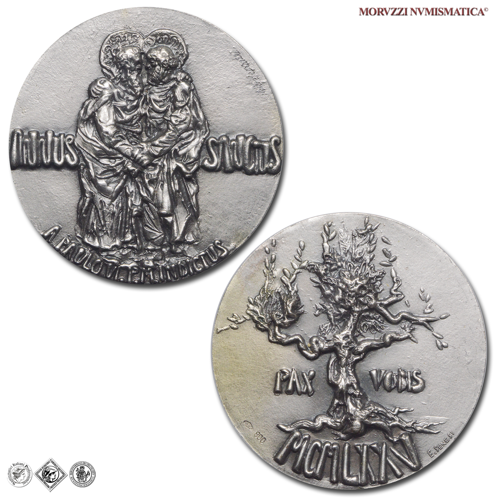 Anno Santo - S.S. Apostoli, Emissione: 1975, Opus Lello Scorzelli ed Emilio Senesi, Rif. bibl. Macri-Marinelli, 302; De Luca, 350; Metallo: AR, gr. 42,56, (MP159947), Diam.: mm. 44,07, FDC