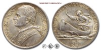 Città del Vaticano, PIO XI, Ratti, 1922-1939, LIRE 5, Emissione: 1931 A X, D/ PIVS • XI • PONT • MAX • A • X, busto del Pontefice con berretto, mozzetta e stola a s.; in basso, a d., su due righe: i nomi dell'autore (MISTRVZZI) e dell'incisore (A • MOTTI • INC •), R/ STATO DELLA CITTA' DEL VATICANO, San Pietro su una barca a s.; in esergo, su due righe: il valore (L•5) e il millesimo (1931), Zecca di Roma, Rif. bibl. Pagani, 634; Metallo: AR, gr. 5,01, (MX162435), Diam.: mm. 23,12, mSPL