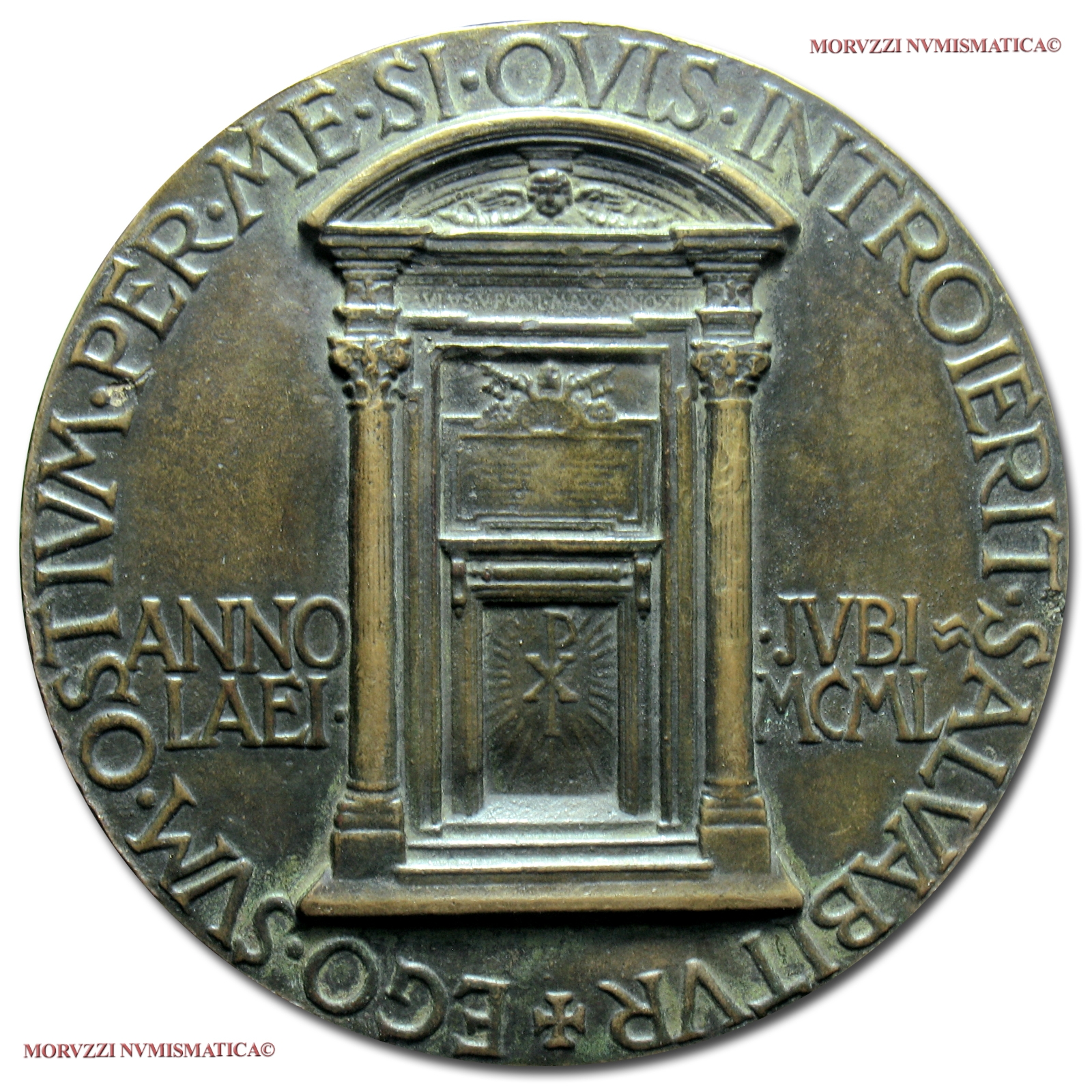 Apertura della Porta Santa Vaticana (Giubileo 1950), Emissione: 1949, Opus Aurelio Mistruzzi, Rif. bibl. Cusumano-Modesti, 75; Metallo: AE, gr. 204,00, (MP102534), Diam.: mm. 88,15, mSPL, (RRR)