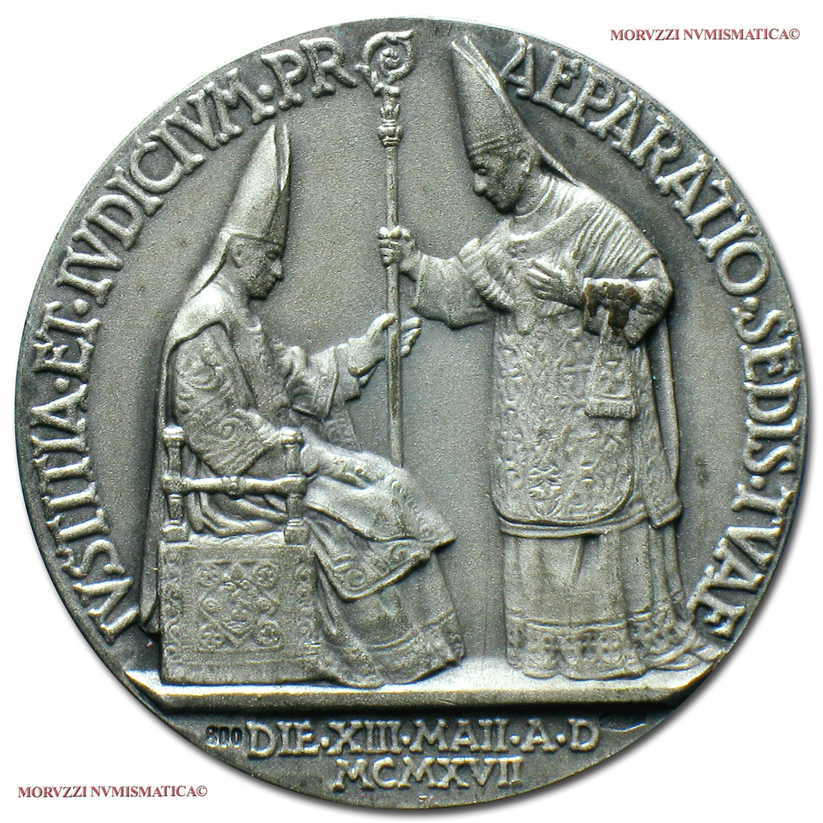 25° anniversario della consacrazione vescovile (Giubileo Episcopale), Emissione: 1942, Opus Aurelio Mistruzzi, Rif. bibl. Cusumano- Modesti, 29; Metallo: AR, gr. 17,81, (MP131351), Diam.: mm. 35,98, FDC, (RR)
