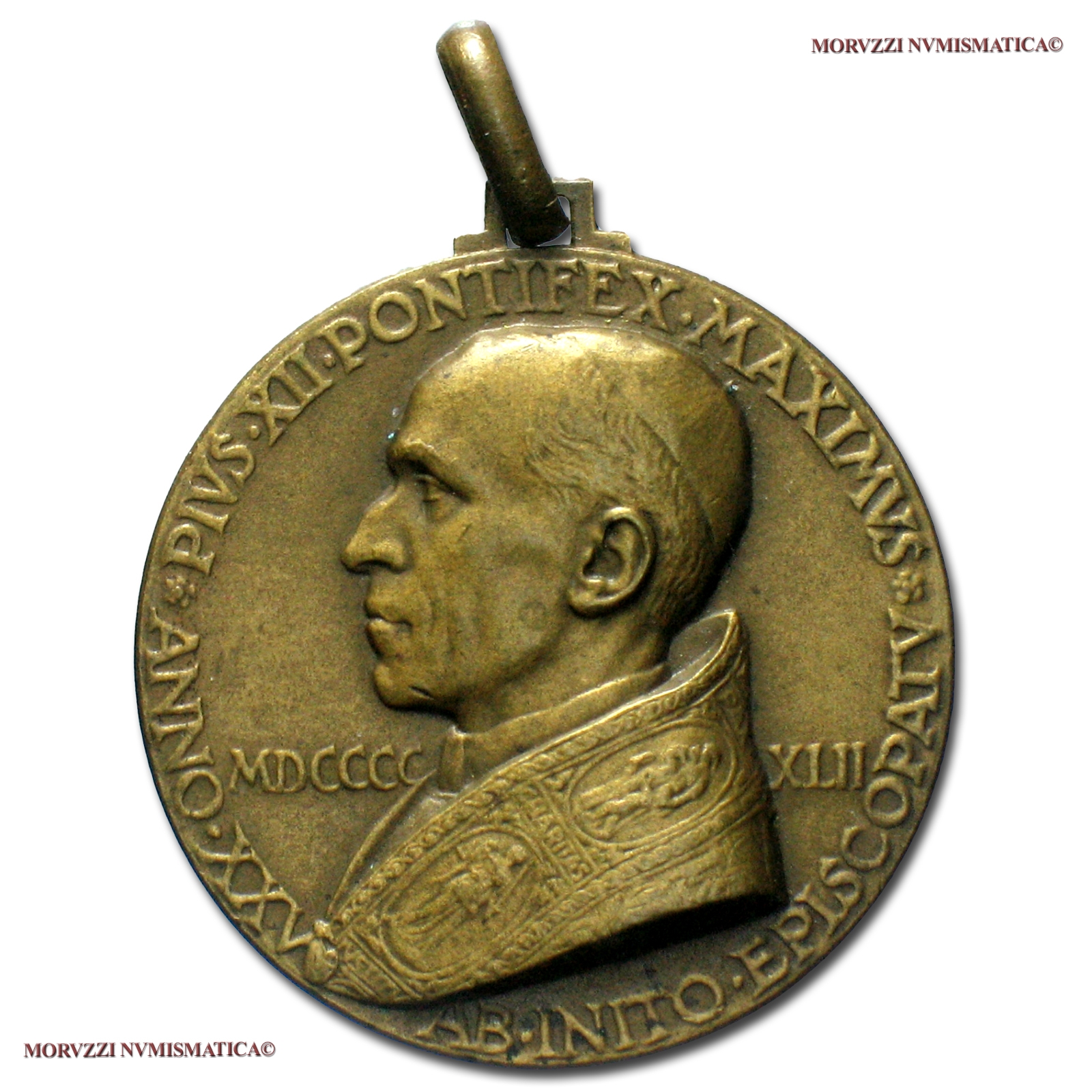 Nel maggio del 1942 ricorreva il 25° anniversario della consacrazione episcopale di Pio XII. La medaglia straordinaria coniata, emessa il 13/05/1942, con fondo opaco dallo Stabilimento F. M. Lorioli F.lli di Milano, opera del Mistruzzi, ricorda il Giubileo Episcopale del Papa.