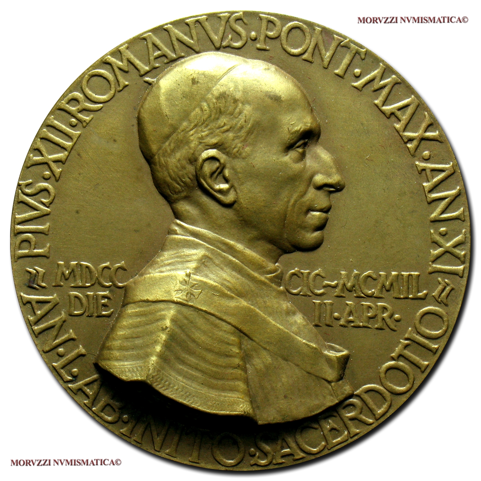 50° anniversario dell'ordinazione sacerdotale, Emissione: 1949, Opus Aurelio Mistruzzi, Rif. bibl. Cus.-Mod., 68; Metallo: AE, gr. 76,74, (MP80934), Diam.: mm. 60,30, FDC, (NC)
