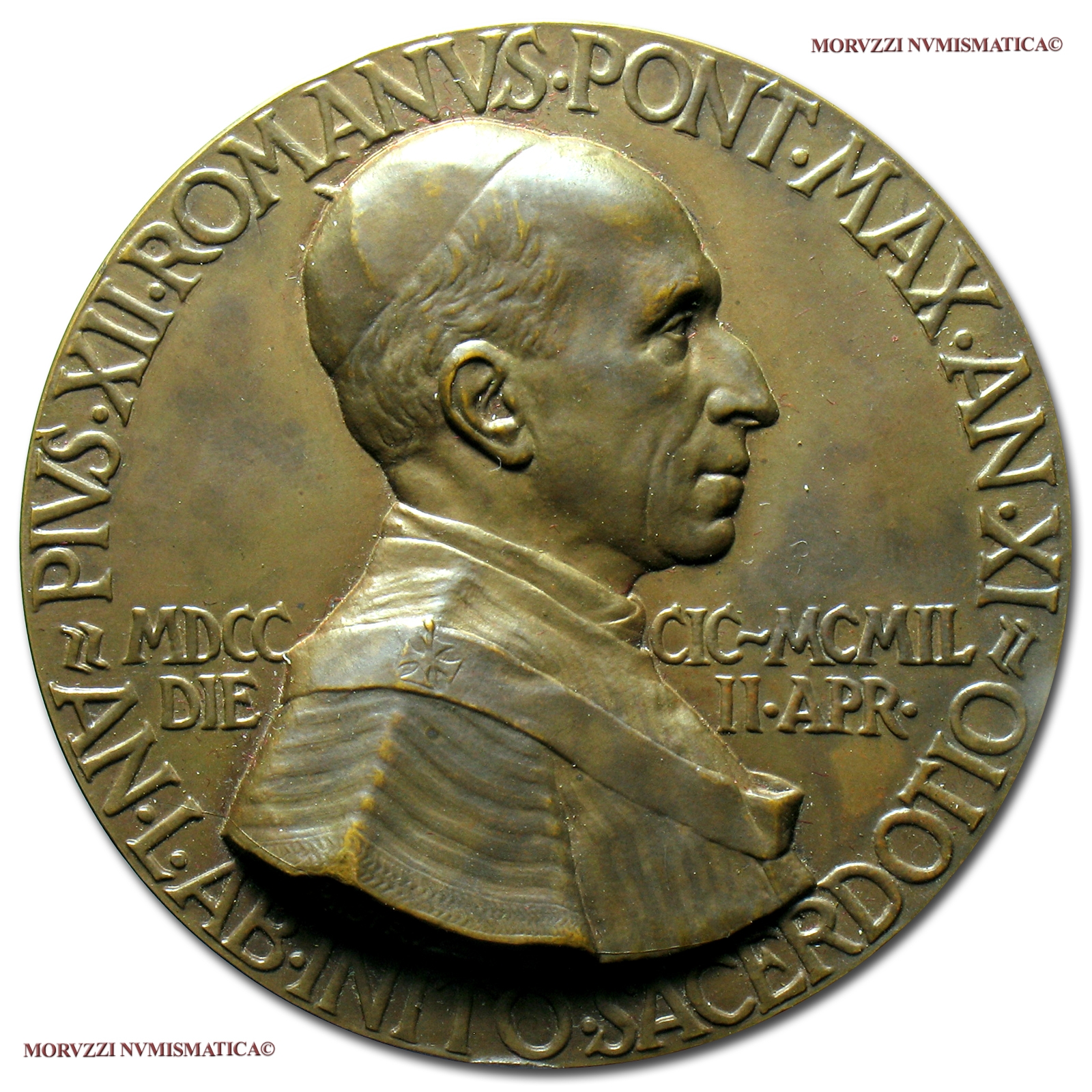 50° anniversario dell'ordinazione sacerdotale, Emissione: 1949, Opus Aurelio Mistruzzi, Rif. bibl. Cus.-Mod., 68; Metallo: AE, gr. 89,32, (MP125462), Diam.: mm. 60,53, qFDC, (NC)