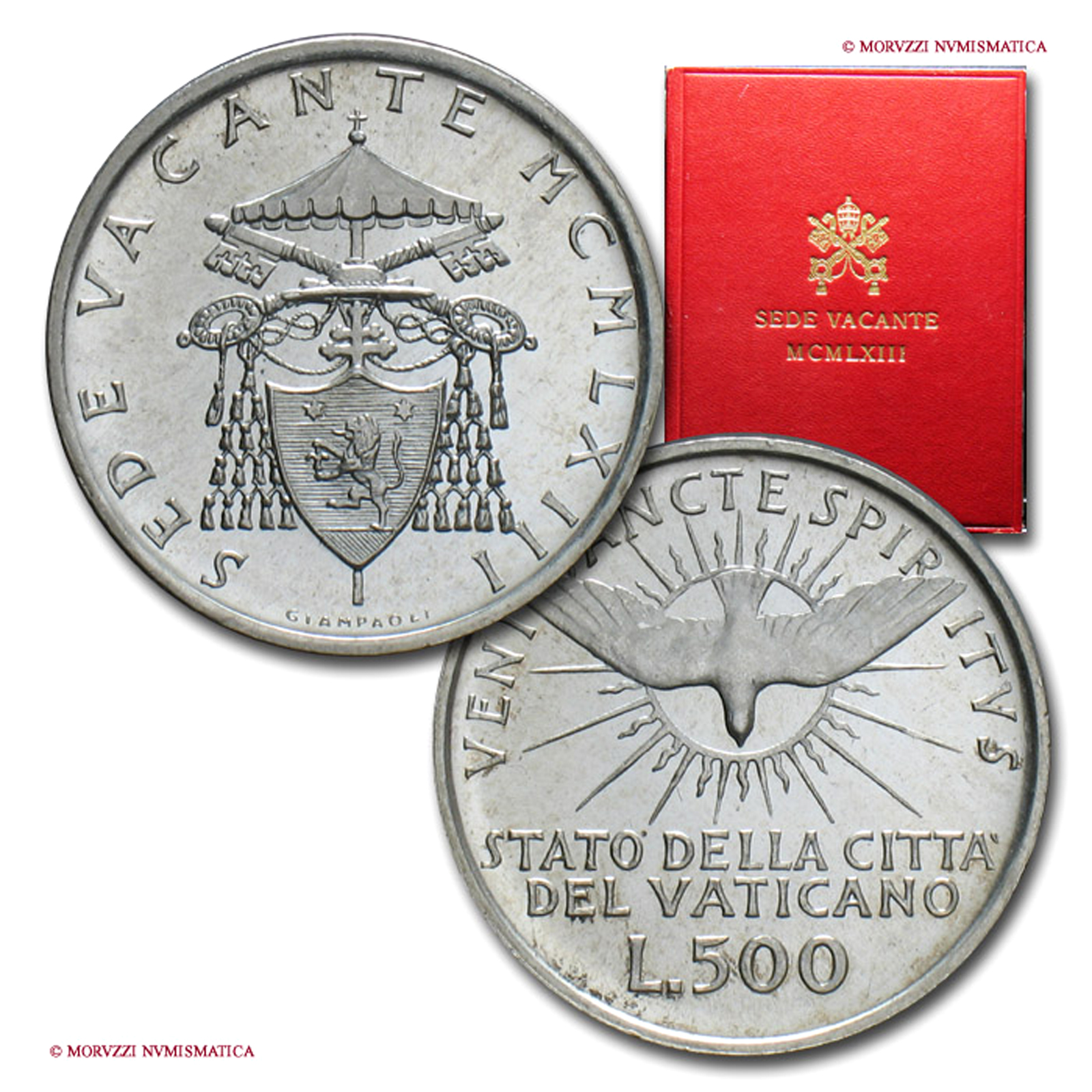 Città del Vaticano, SEDE VACANTE, 1963, LIRE 500, Camerlengo Cardinale Aloisi-Masella, Emissione: 1963, in astuccio originale, Zecca di Roma, Rif. bibl. Unif, SV63.335; Metallo: AR, gr. 11,00, (MX146676-146677), Diam.: mm. 29,00, FDC * la foto di questo oggetto è generica ed indicativa dell’esemplare in vendita.