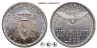 Città del Vaticano, SEDE VACANTE, LIRE 500, Card. Aloisi Masella, Emissione: 1963, D/ SEDE VACANTE MCMLVIII, stemma del Camerlengo Aloisi Masella, R/ VENI SANCTE SPIRITUS, Colomba radiante in volo. Al di sotto: STATO DELLA CITTA' DEL VATICANO e nominale (L.500), Zecca di Roma, Rif. bibl. Pagani, 980; Metallo: AR, gr. 11,01, (MX159827), Diam.: mm. 29,38, FDC