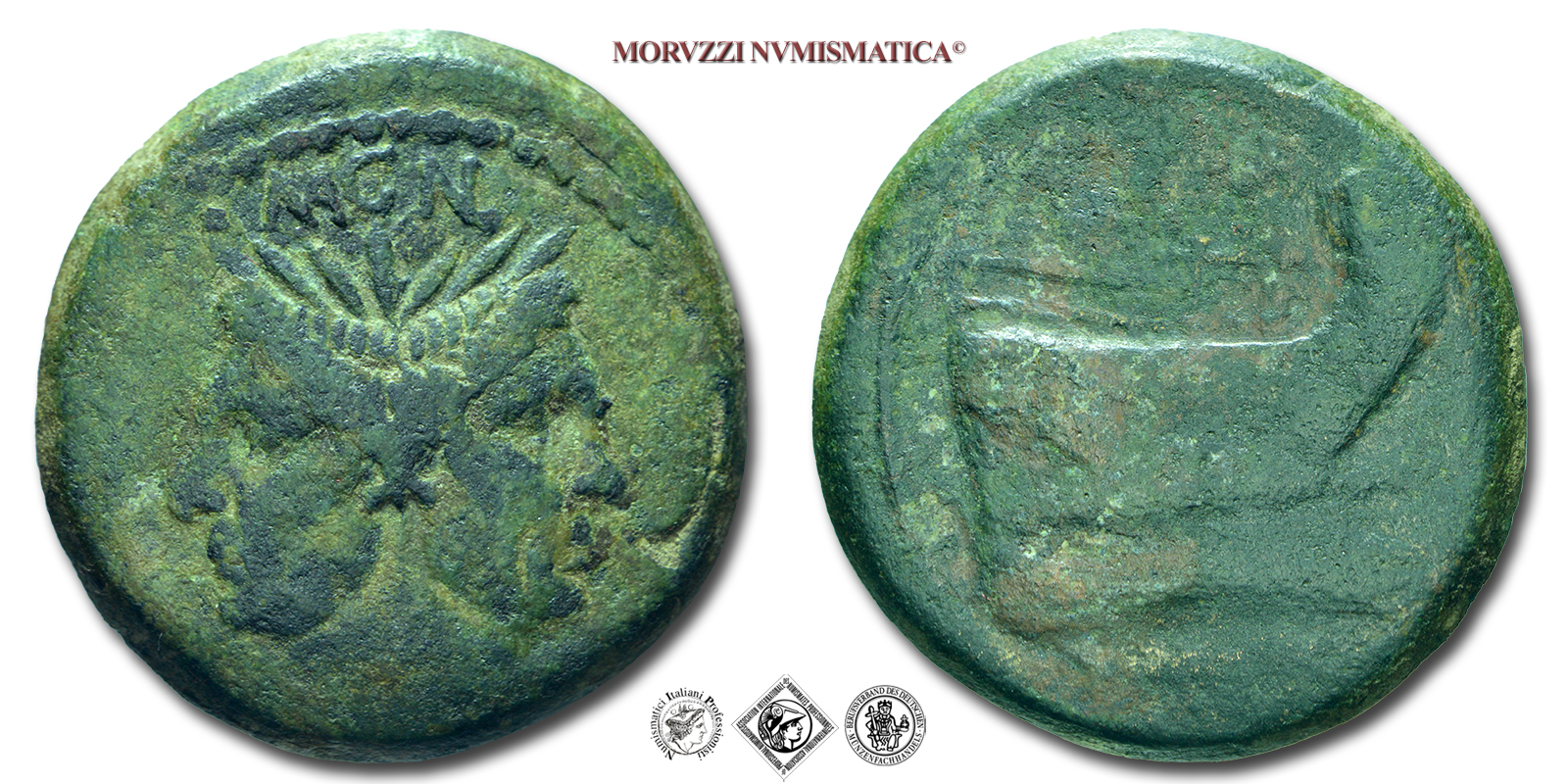 CNEO POMPEO, ASSE, Emissione: 45 a.C., Zecca di Spagna-Sicilia, Rif. bibl. Craw., 479/1; Metallo: AE, gr. 24,01, (MR153938), Diam.: mm. 30,74, BB, (NC)