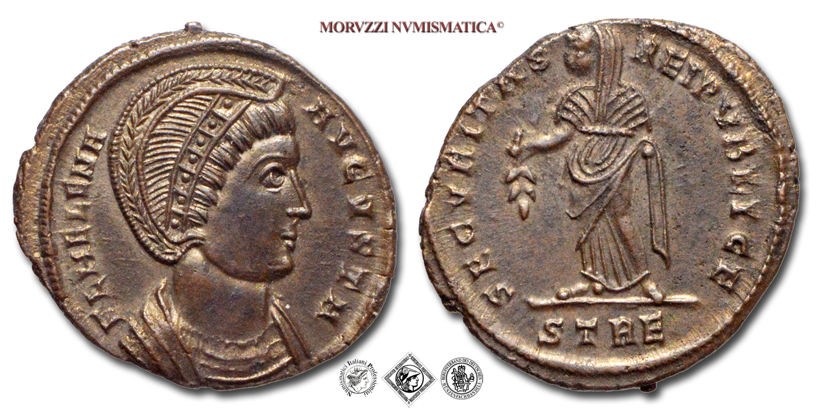 ELENA, Madre di Costantino, 307-337 d.C., PICCOLO BRONZO, Emissione: 324-325 d.C., Zecca di Treviri, Rif. bibl. R.I.C., 458; Cohen, 12; Metallo: AE, gr. 2,95, (MR163104), Diam.: mm. 19,12, SPL
