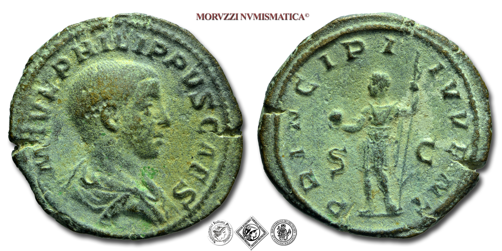 FILIPPO II, 247-249 d.C., SESTERZIO, Emissione: 244-246 d.C., Zecca di Roma, Rif. bibl. R.I.C., 255; Cohen, 55; Metallo: AE, gr. 19,58, (MR150139), Diam.: mm. 32,37, BB