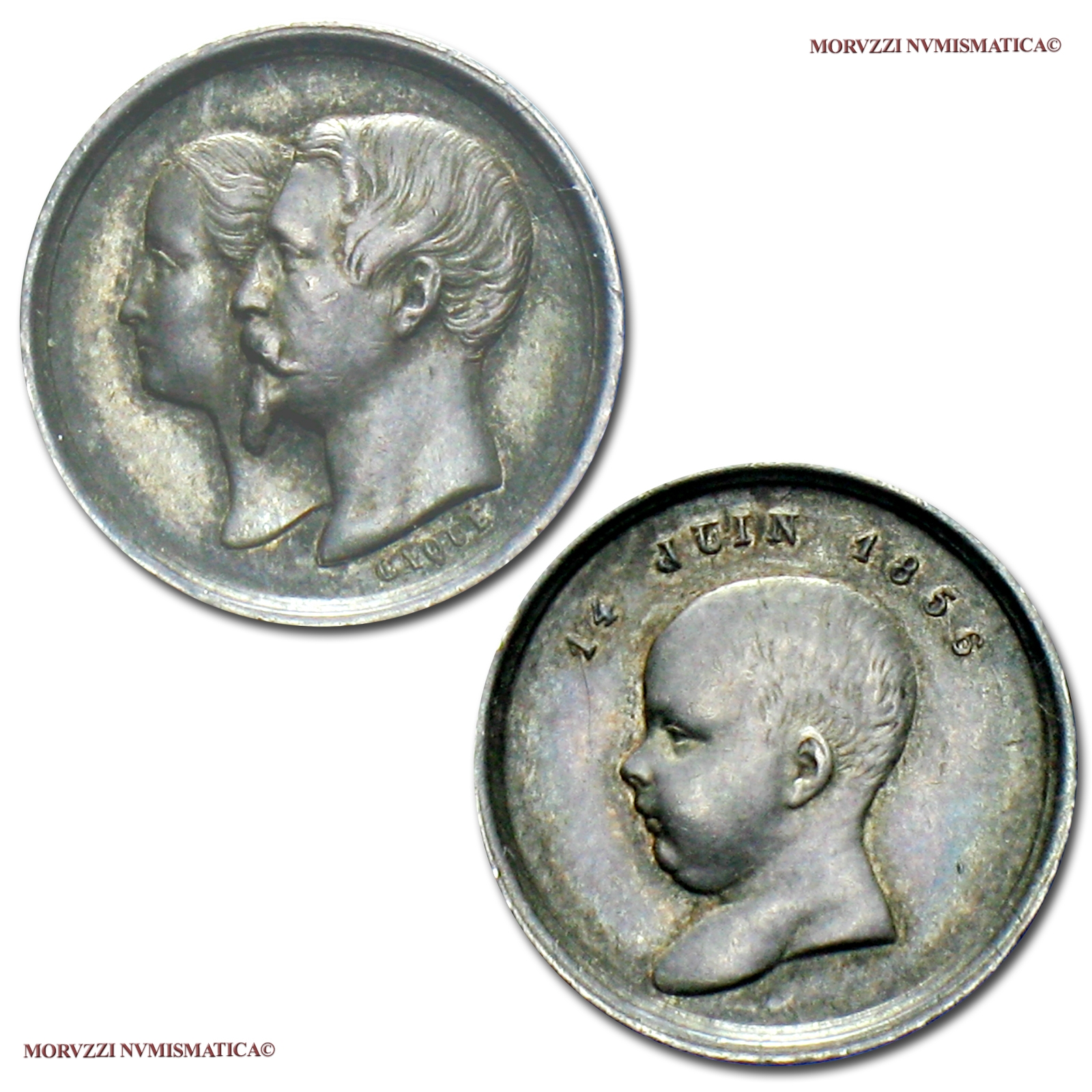 Battesimo del Principe ereditario, Emissione: 1856, Opus Caque, Metallo: AR, gr. 2,15, (MV128931), Diam.: mm. 15,46, mBB