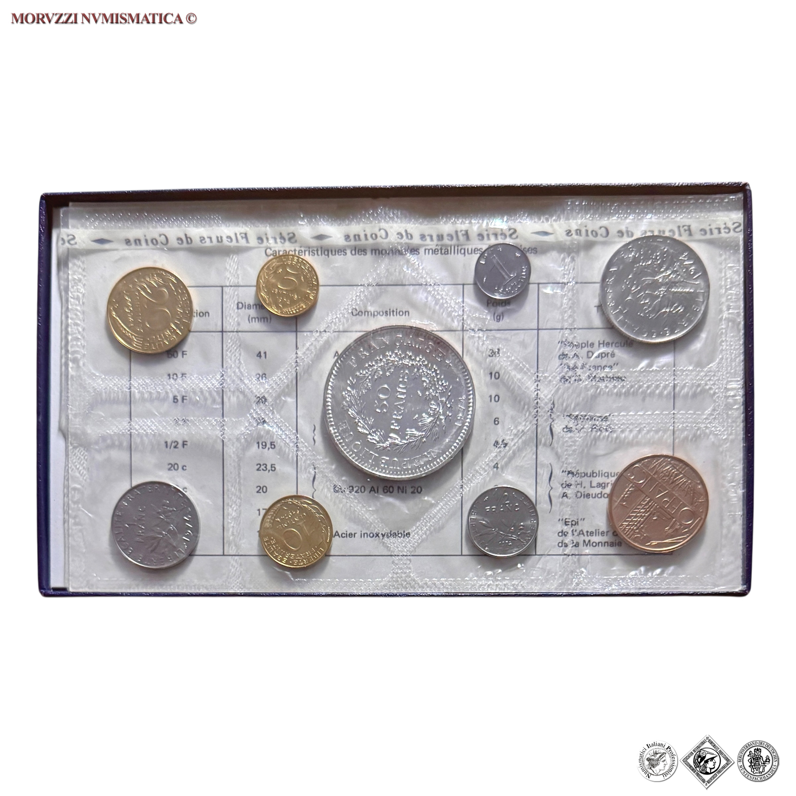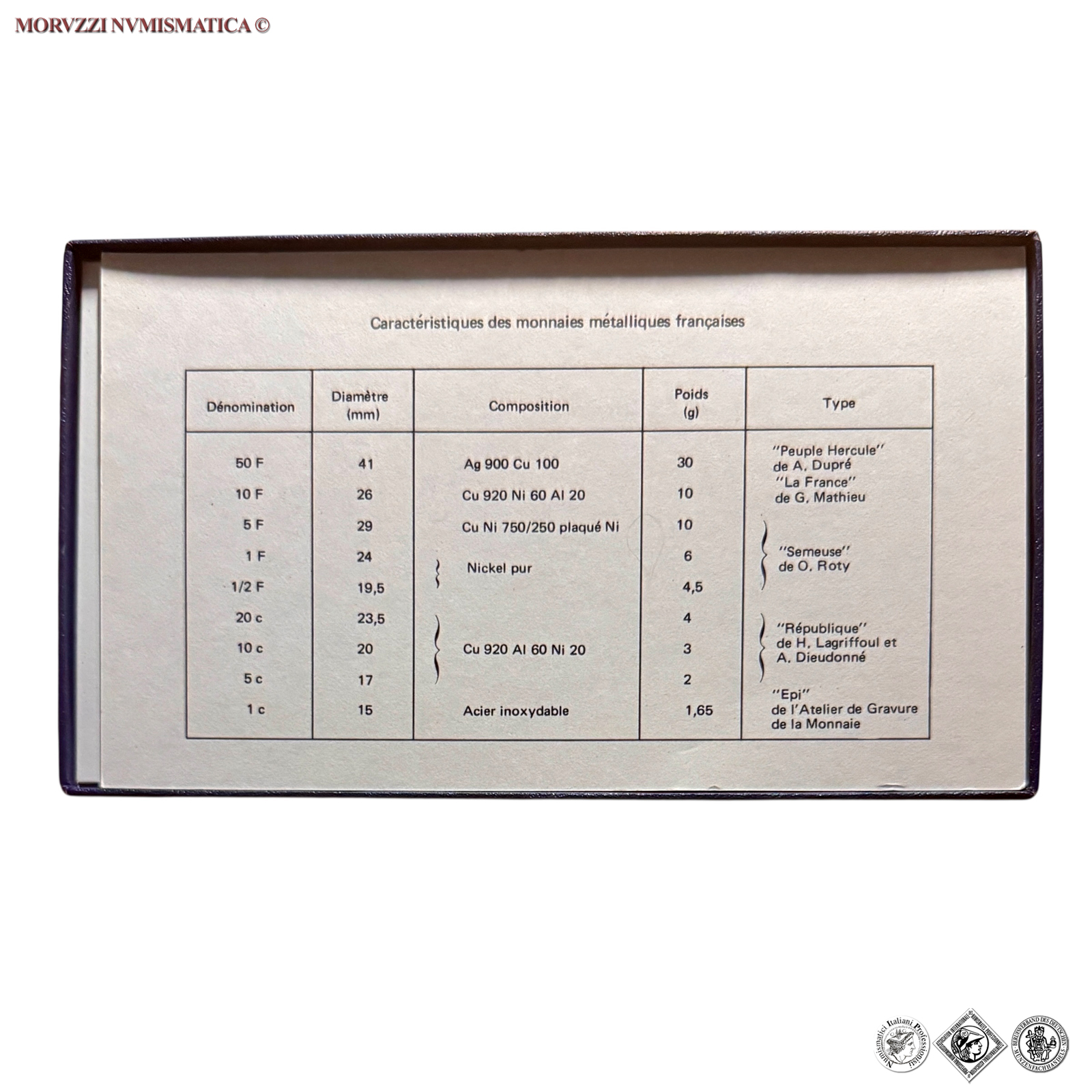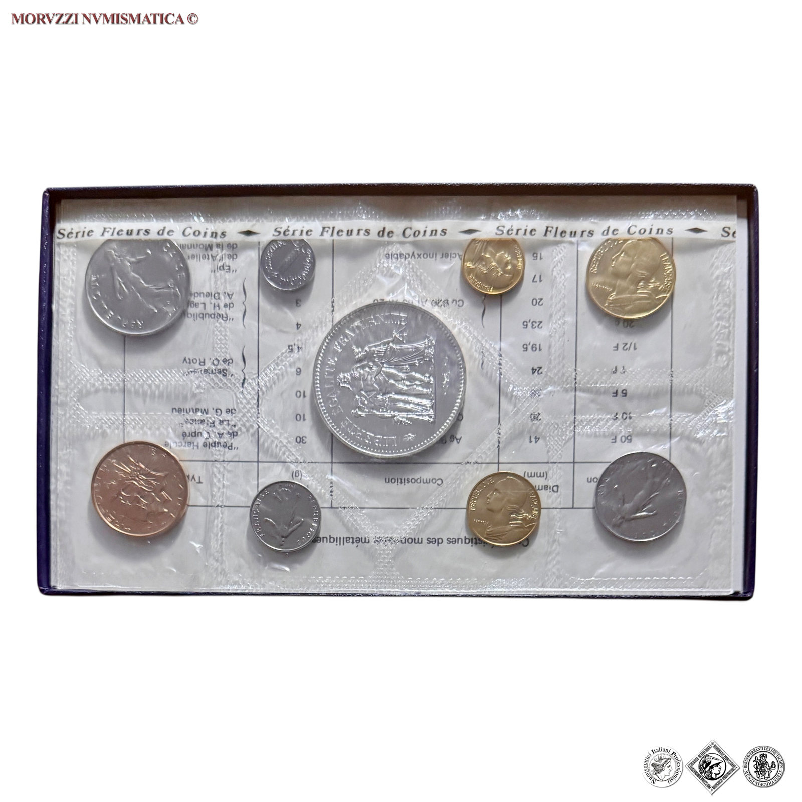 Francia, REPUBBLICA, Dal 1959, SERIE DI 9 MONETE, Emissione: 1974, Zecca di Parigi, Rif. bibl. KM, SS11; Gadoury, 262; Metallo: vari, (ME18204), FDC