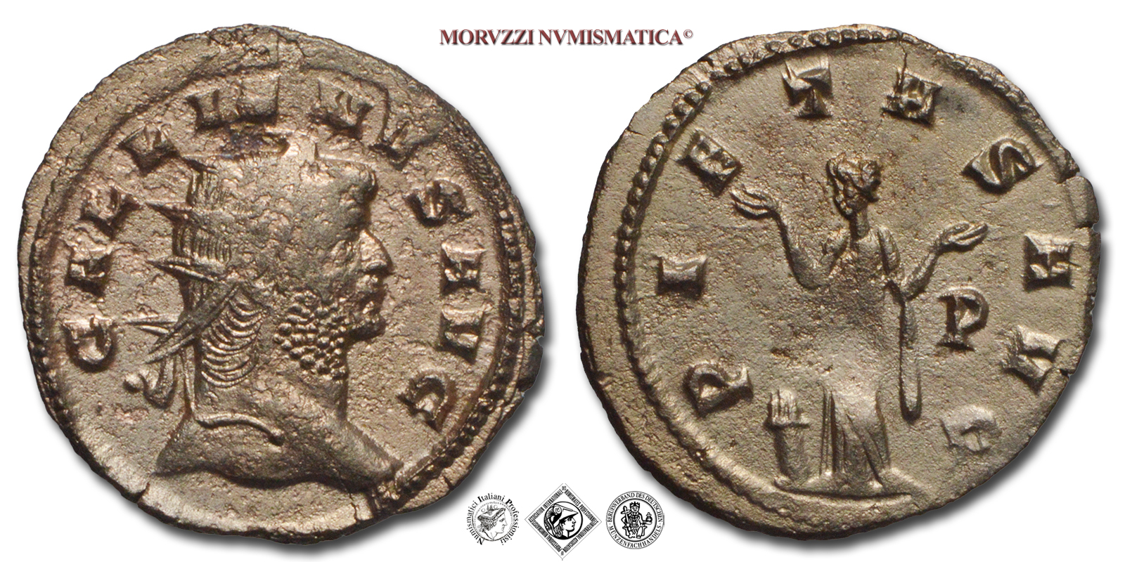 Impero Romano, GALLIENO, 253-268 d.C., ANTONINIANO, Emissione: 253-268 d.C., D/ GALLIENVS AVG, testa radiata a destra, R/ PIETAS AVG, P, la Pietas stante a sinistra con entrambe le mani levate dinanzi ad un altare, Zecca di Mediolanum, Rif. bibl. R.I.C., 507; Cohen, 786; Metallo: AE, gr. 3,05, (MR160236), Diam.: mm. 21,62, BB