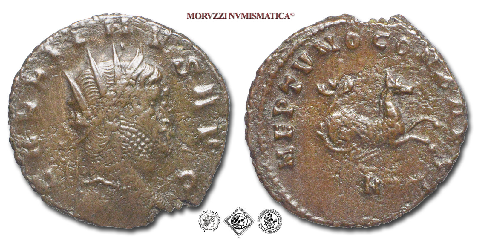 Impero Romano, GALLIENO, 253-268 d.C., ANTONINIANO, Emissione: 267-268 d.C., D/ GALLIENVS AVG, busto radiato, drappeggiato e corazzato a destra, R/ NEPTVNO CONS AVG, N, ippocampo a destra, Zecca di Roma, Rif. bibl. R.I.C., 245; Cohen, 668; Metallo: AE, gr. 2,98, (MR160245), Diam.: mm. 20,83, BB