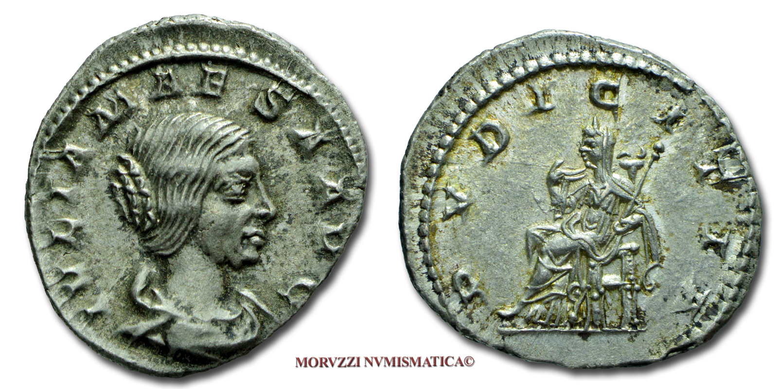 GIULIA MESA, Sorella di Giulia Domna, 193-211 d.C., DENARIO, Emissione: 218-222 d.C., Zecca di Roma, Rif. bibl. R.I.C., 268; Cohen, 36; Metallo: AR, gr. 3,23, (MR93505), Diam.: mm. 19,36, SPL