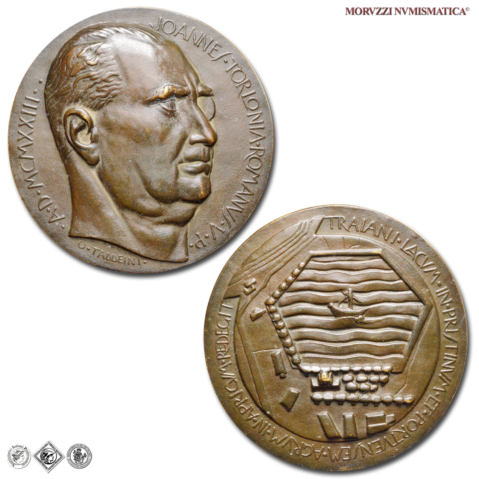 Italia, GIOVANNI TORLONIA, MEDAGLIA, Emissione: 1937, D/ testa di 3/4 a d., R/ veduta dall'alto del porto di Traiano, Opus O. Taddeini, Metallo: AE, gr. 119,60, (MY146762), Diam.: mm. 61,21, qFDC, (RRRR)